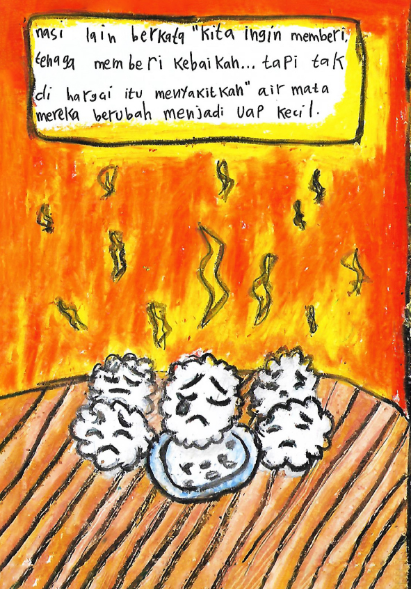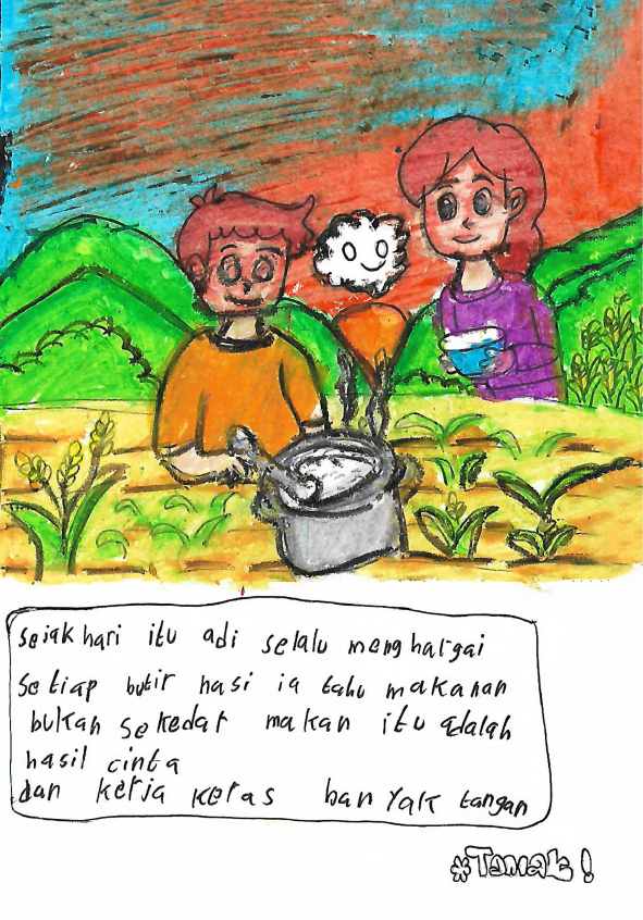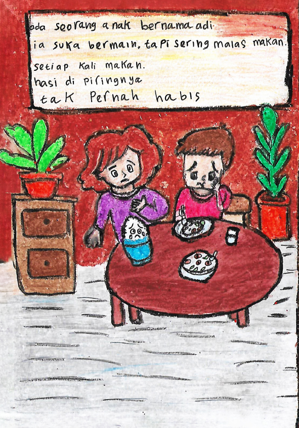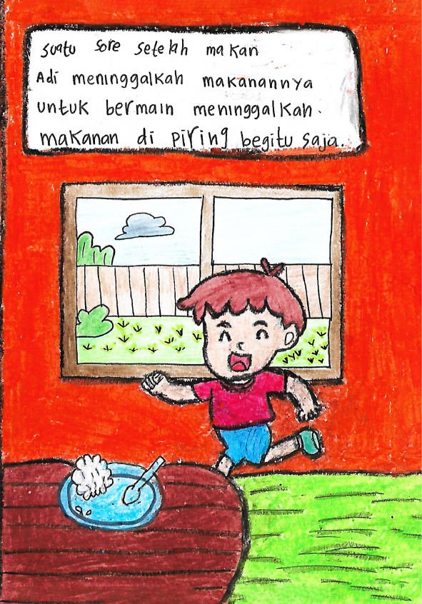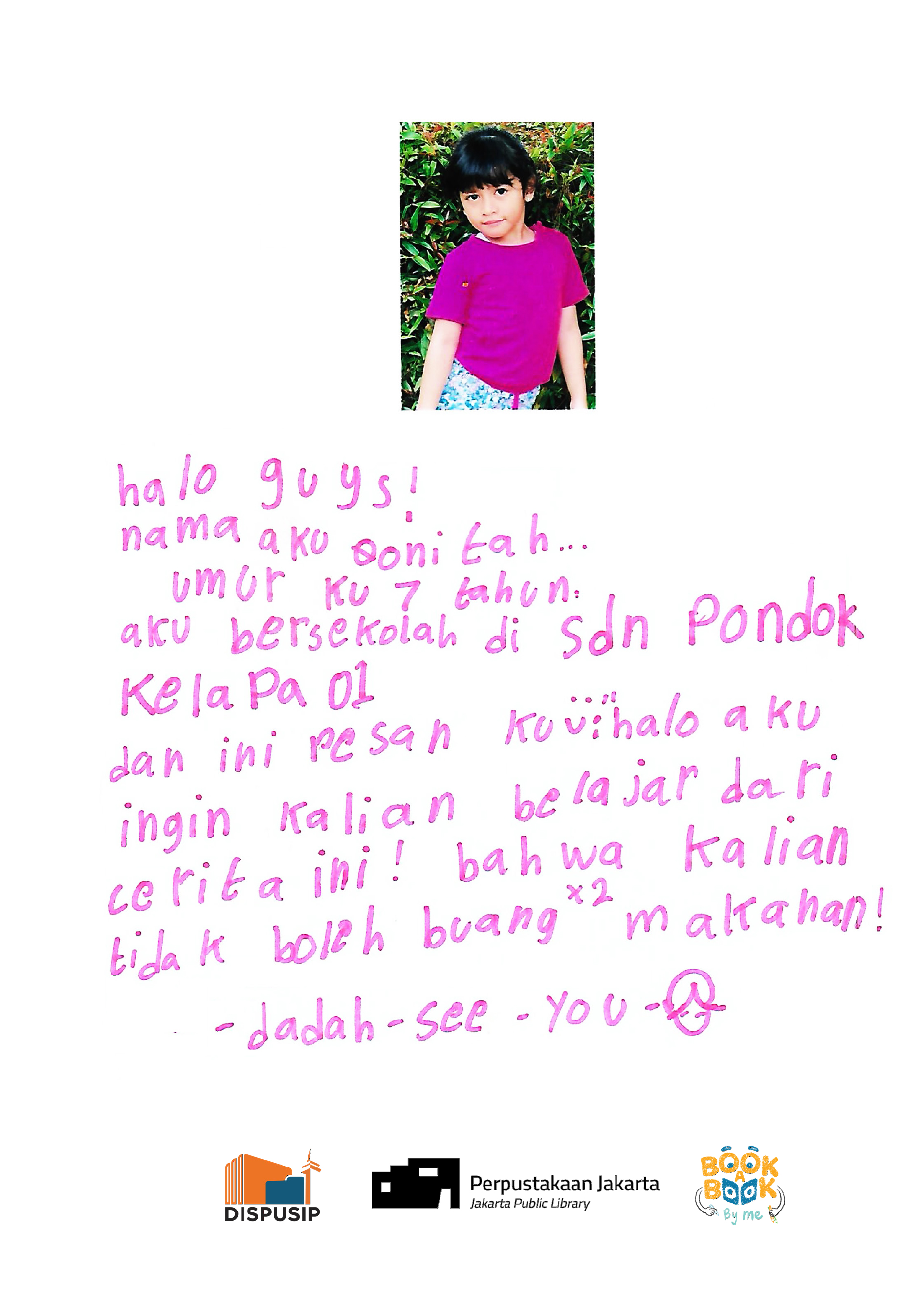 Hallo guys, namaku Qonitah. Umurku 7 tahun. Aku bersekolah di SDN Pondok Kelapa 01. Dan ini pesanku. Halo, aku ingin kalian belajar dari cerita ini. Bahwa kalian tidak boleh buang-buang makanan. Dadahh...see you.