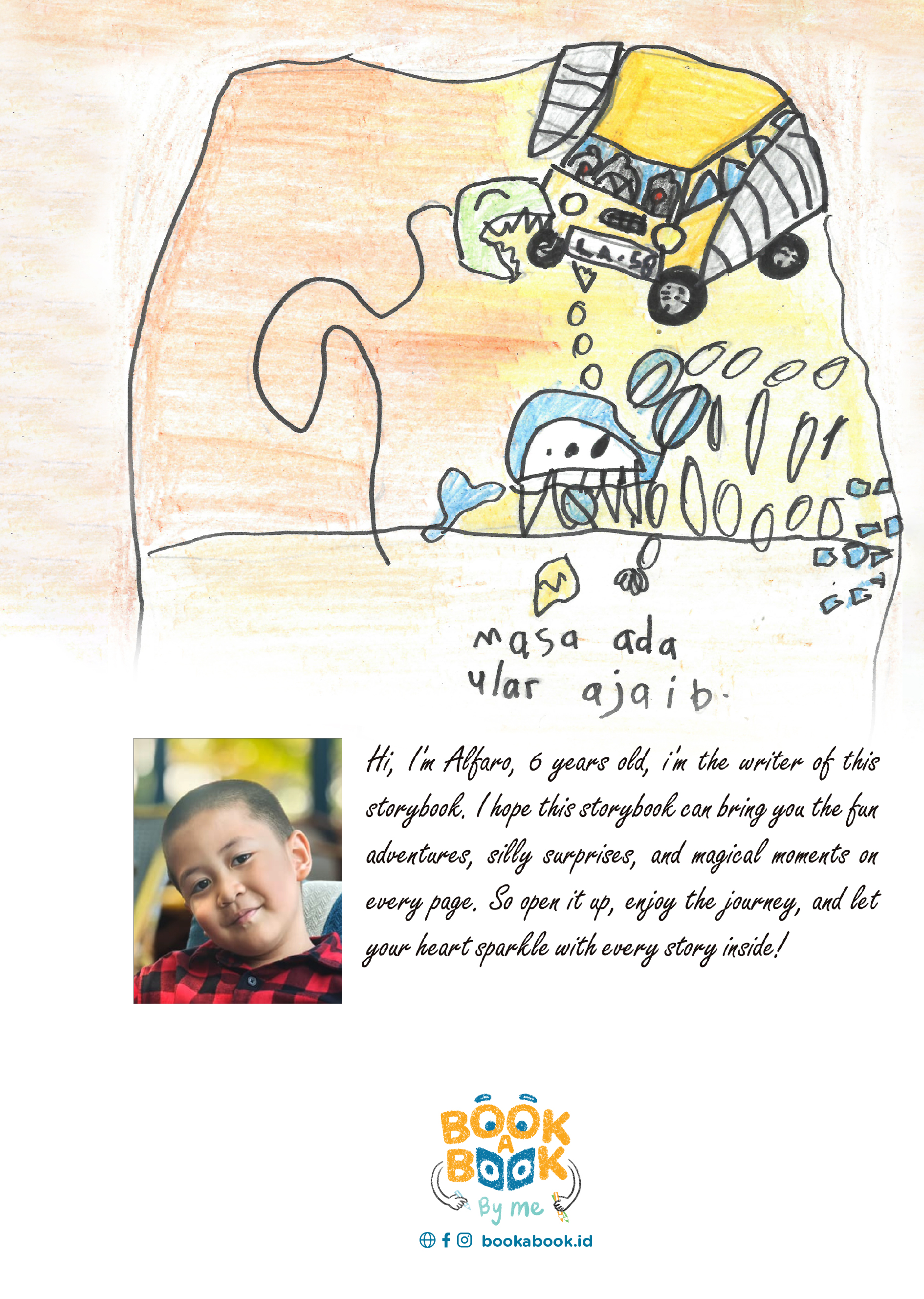 Hi, I'm Alfaro, 6 years old, i'm the writer of this storybook. I hope this storybook can bring you the fun adventures, silly surprises, and magical moments on every page. So open it up, enjoy the journey, and let your heart sparkle with every story inside!