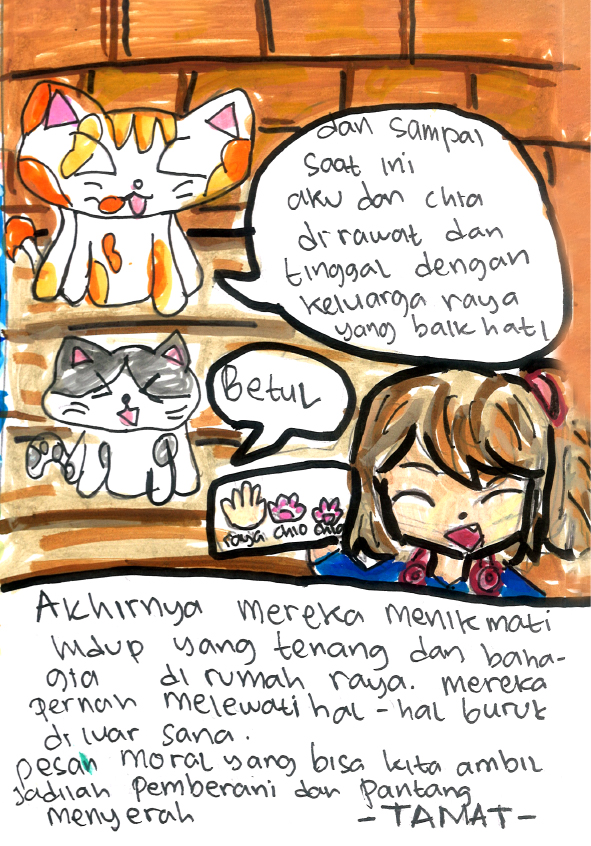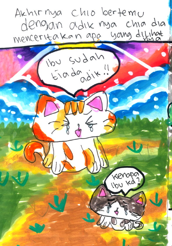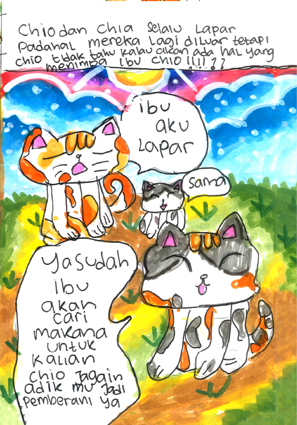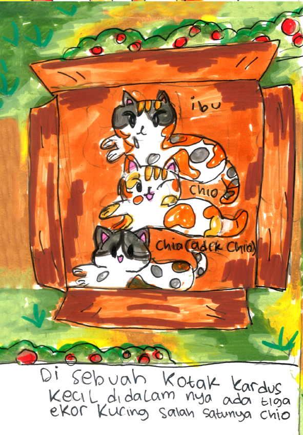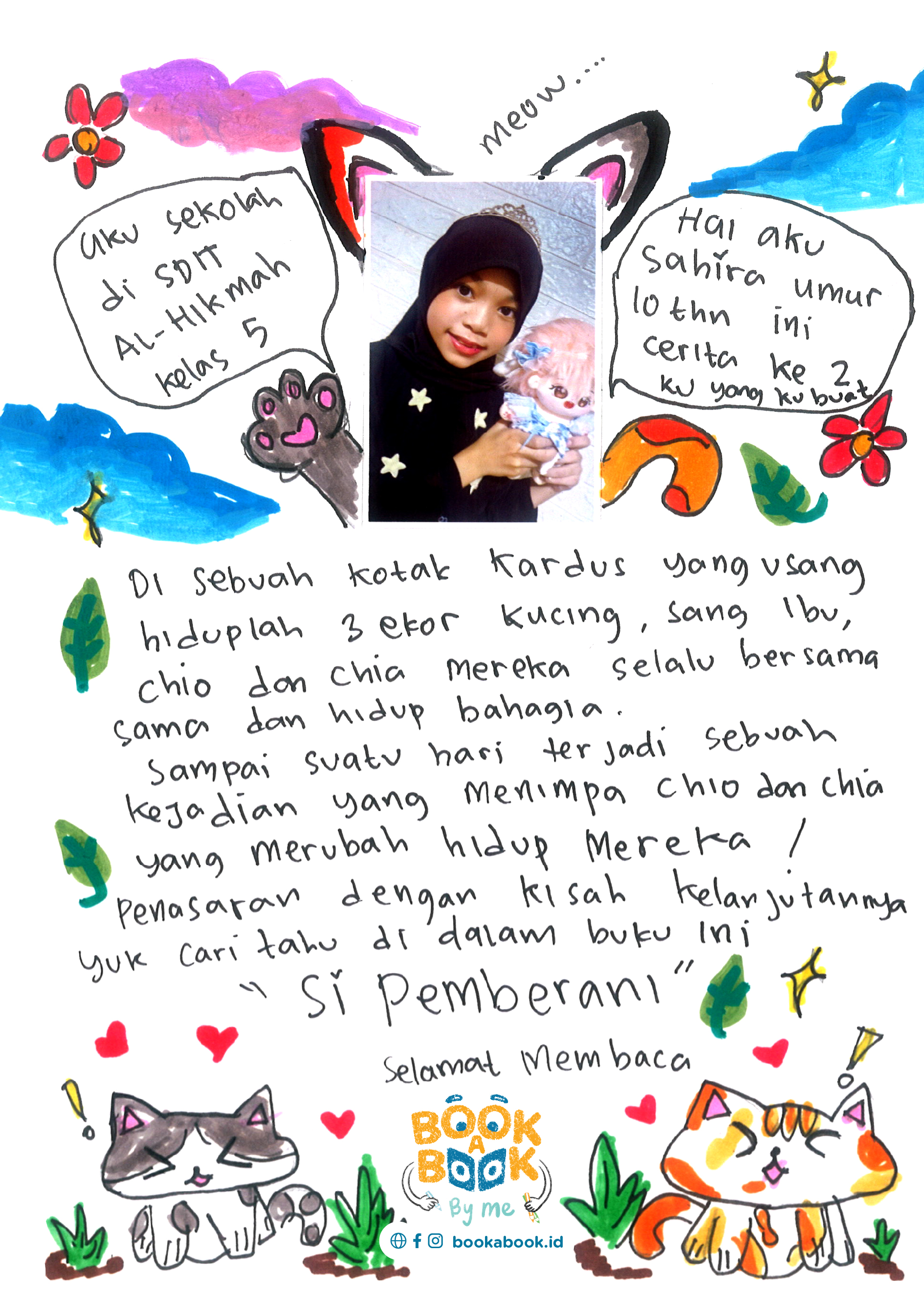 Di sebuah kotak kardus yang usang hiduplah 3 ekor kucing, sang ibu, chio dan chia mereka selalu bersama sama dan hidup bahagia sampai suatu hari terjadi sebuah kejadian yang menimpa chio dan chia yang merubah hidup mereka ! Penasaran dengan kisah kelanjutannya yuks cari tahu didalam buku ini si pemberani. Selamat membaca