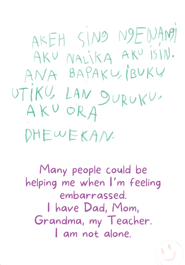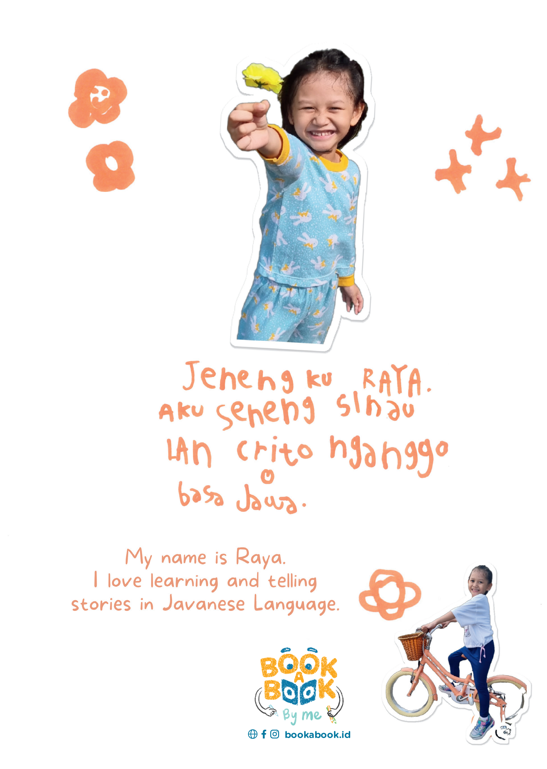 Jenengku Raya. Aku seneng sinau lan crito nganggo basa Jawa. My name is Raya. I love learning and telling stories in Javanese Language.