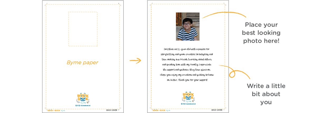 Scan your work with a minimum 300 DPI resolution printer and upload them to www.bookabook.id/byme-upload or email to [email protected]